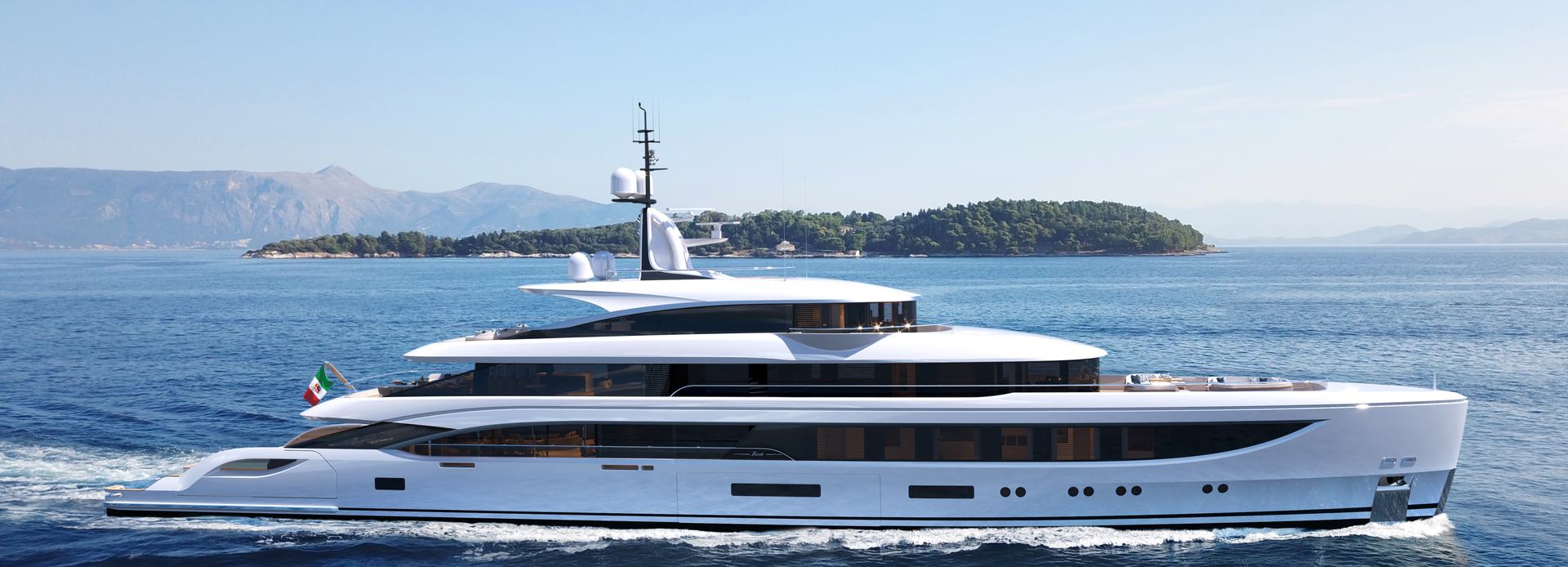 Designed around a displacement steel hull and an aluminium superstructure she features a 11m beam and a 3.1m draft. The yacht has an internal volume of 1,300 GT (Gross Tonnes).