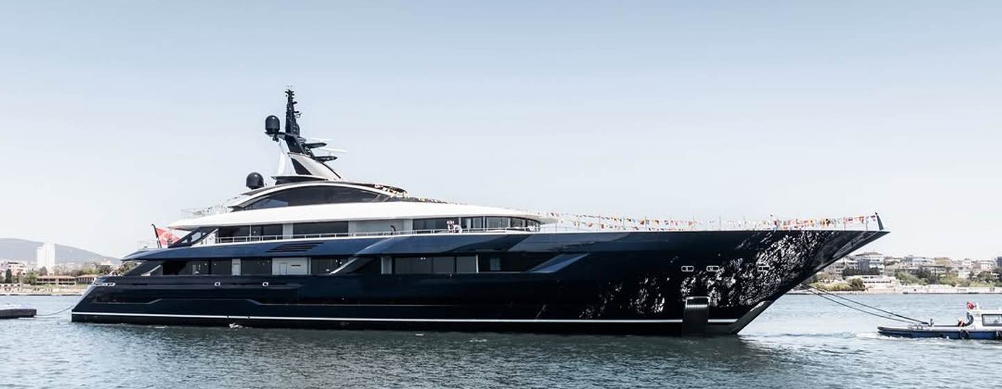 N2H brings a sharper, more contemporary aesthetic to the Turquoise fleet, defined by strong horizontal lines, angular forms and a sleek, dark-toned finish. The superyacht's sharply raked bow, layered deck overhangs and expansive glazing create a sculptural, stealth-inspired profile that signals a clear evolution from the yard’s earlier styling. Construction began in early 2022, before the yacht was transferred to Pendik for final outfitting ahead of launch.