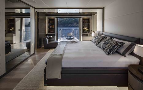 At just under 34m, the Mangusta GranSport 34 defines the entry point into Mangusta’s fast cruising GranSport lineup. Built in composite, it is engineered to deliver long range at relatively high cruising speeds, with a reported maximum range of 3,000 nautical miles at 20 knots. Accommodation is arranged across five cabins for up to 12 guests, supported by a crew of five.