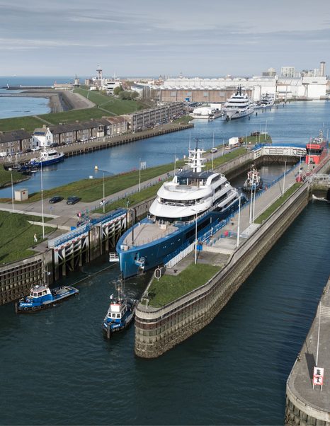 According to YachtBuyer MarketWatch, the largest yacht database in the world, the yacht was observed departing Vlissingen and proceeding into the North Sea, where she is currently underway under engine. This transition from controlled yard conditions to real-world operation marks a key step in the build timeline, as systems are tested beyond static dockside checks.