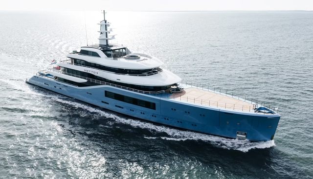 Finished in a distinctive dolphin blue metallic hull with a platinum bootstripe and white superstructure, Netto II is the second hull in the Amels 80 Limited Editions series. She features exterior design by Espen Øino International, custom interiors by Sinot Yacht Architecture & Design, and naval architecture developed in-house.